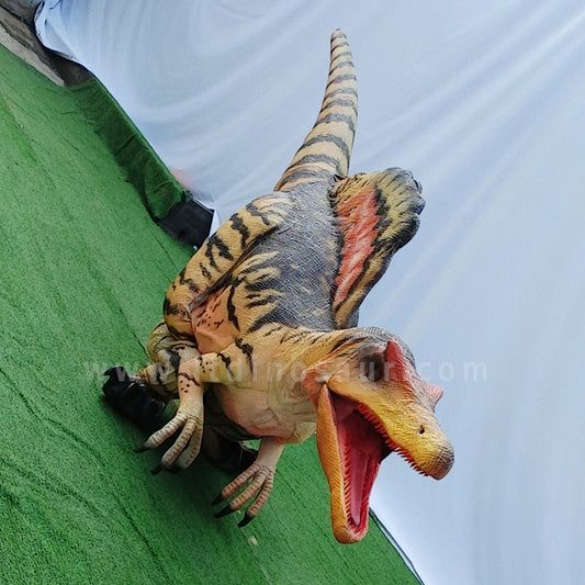 We have two kinds of animatronic dinosaur costumes to choose from. One has a silicone rubber surface and the other has a fabric skin. Because of the skin materials, the weights are 26kg and 18kg respectively. Available in exposed puppeteer's legs or hidden puppeteer's legs styles.
